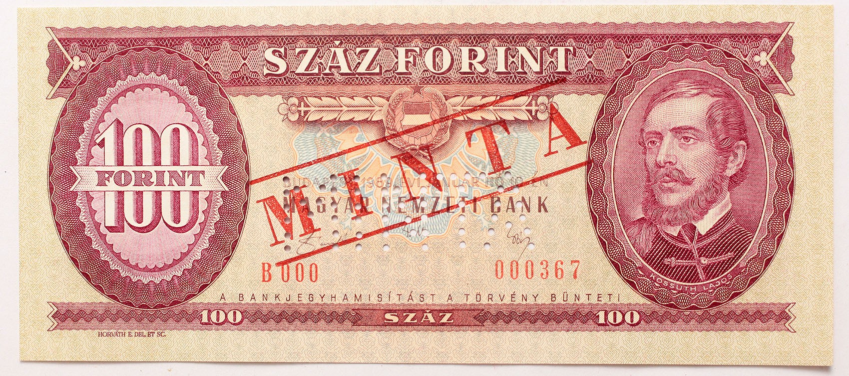 100 forint 1989 MINTA lyukasztás és felülnyomás