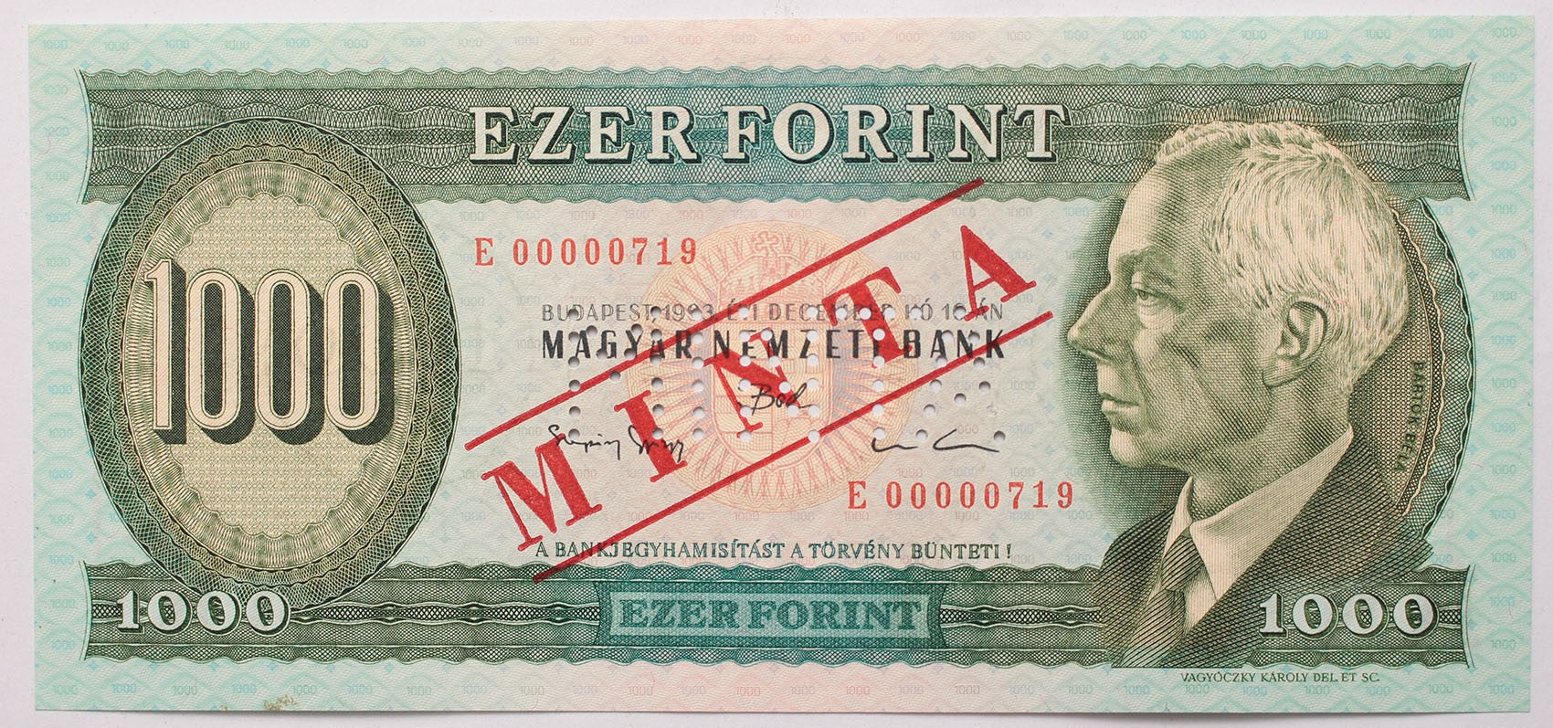 1000 forint 1993 E minta lyukasztás és felülnyomás