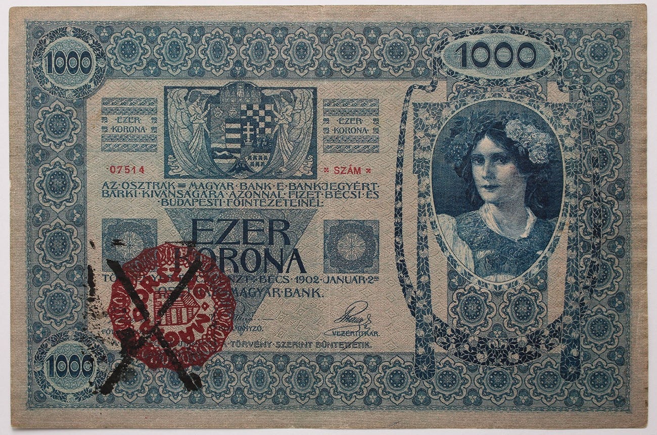 1000 korona 1902 Magyarország FB. érvénytelenített