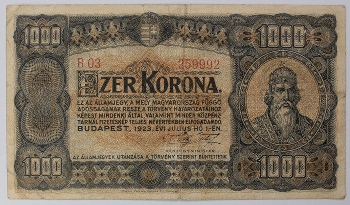 1000 Korona 1923 Magyar Pénzjegynyomda Rt.