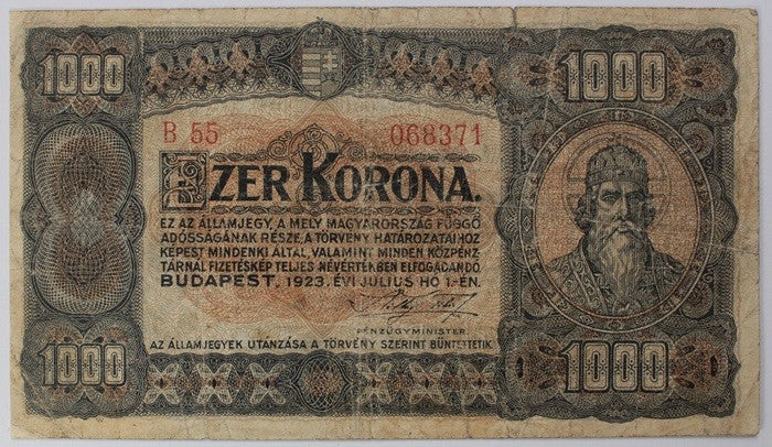 1000 Korona 1923 , Nyomdahely megjelölése nélkül