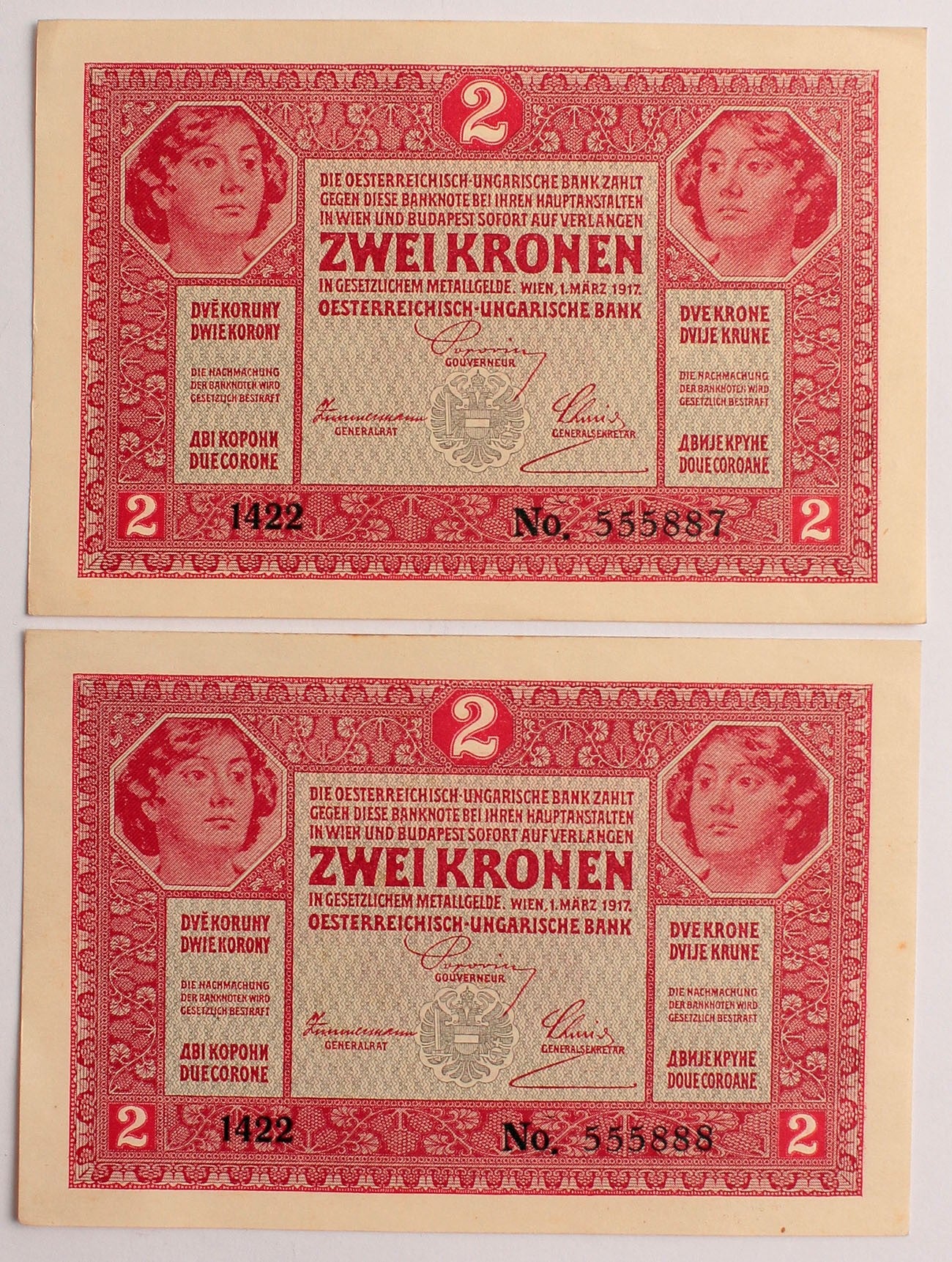 2 korona 1917 2db. sorszámkövető