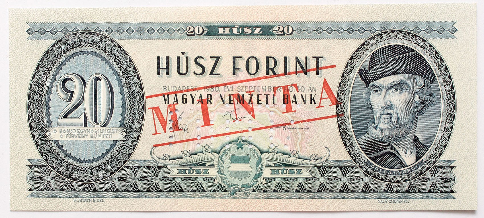 20 forint 1980 MINTA lyukasztás és felülnyomás