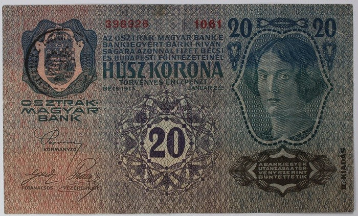 20 Korona 1913 Románia felülbélyegzés