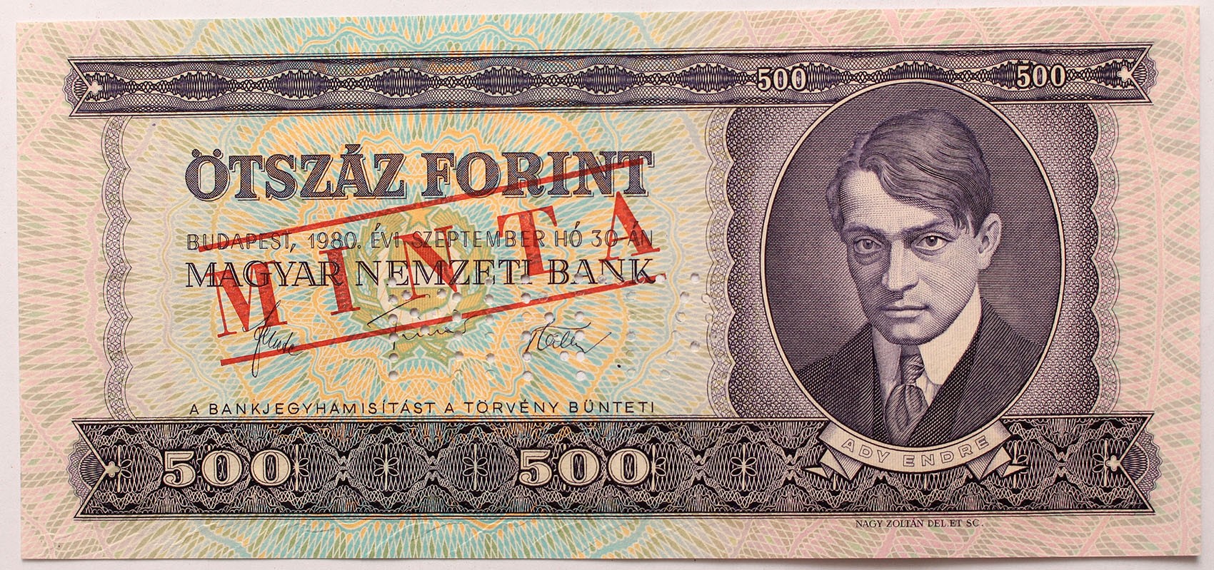 500 forint 1969 MINTA lyukasztás és felülnyomás