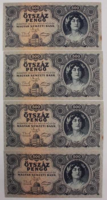 500 Pengő 1945 sorszámkövető 4 db.