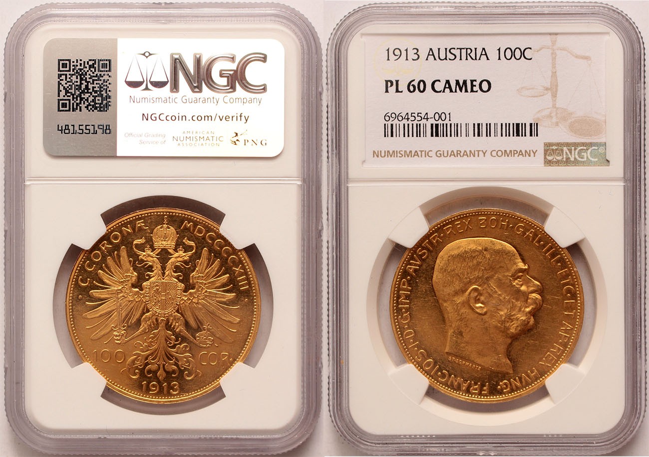 Ausztria 100 corona 1913 NGC PL 60 CAMEO