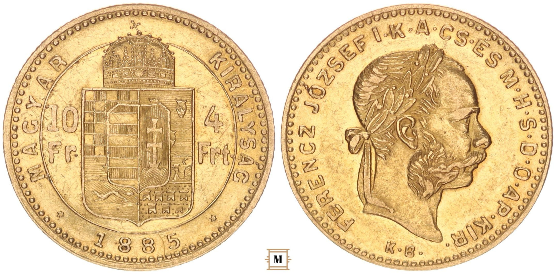 Ferenc József 10 frank 4 forint 1885 KB
