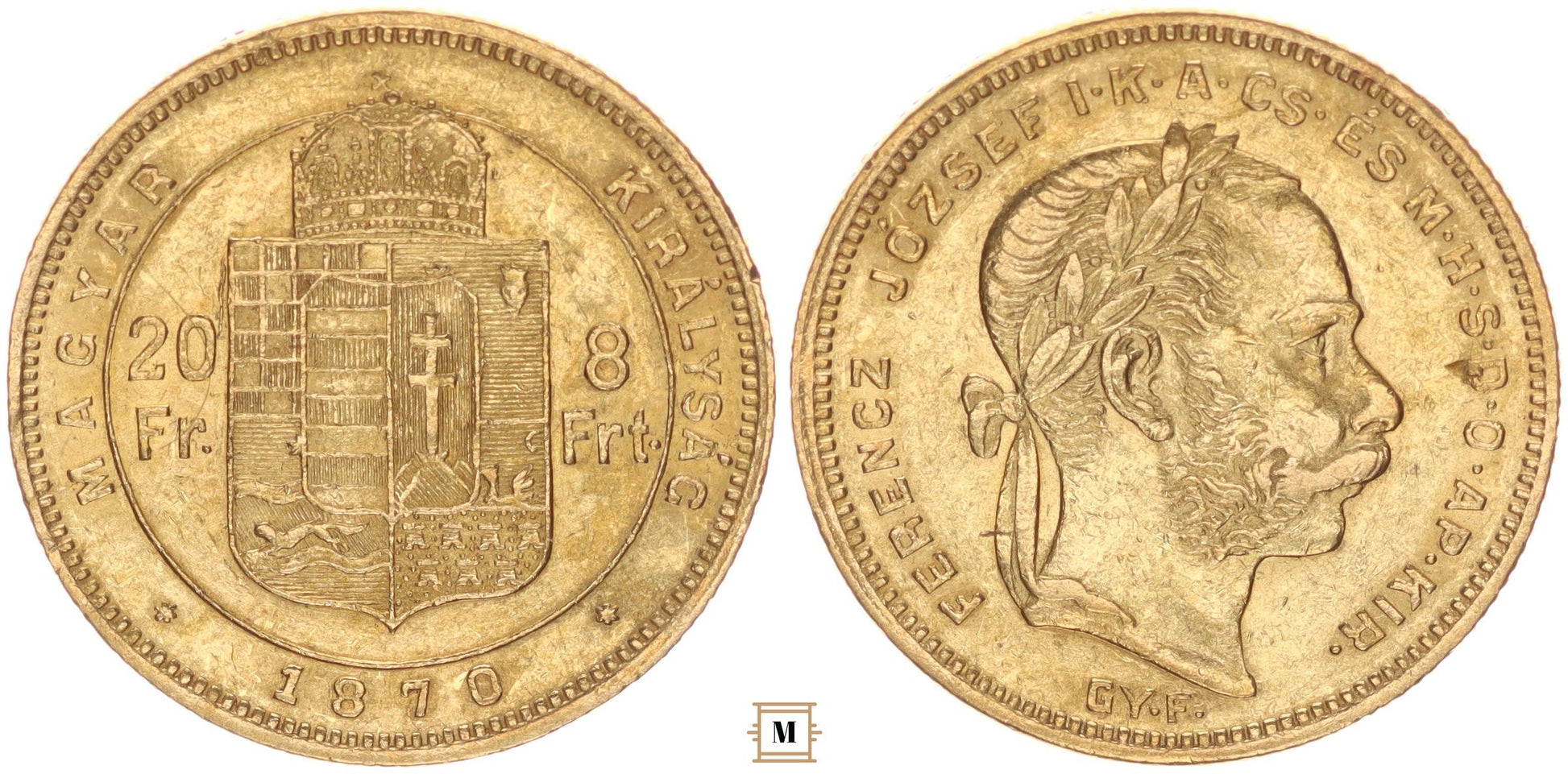 Ferenc József 20 frank 8 forint 1870 Gy.F.