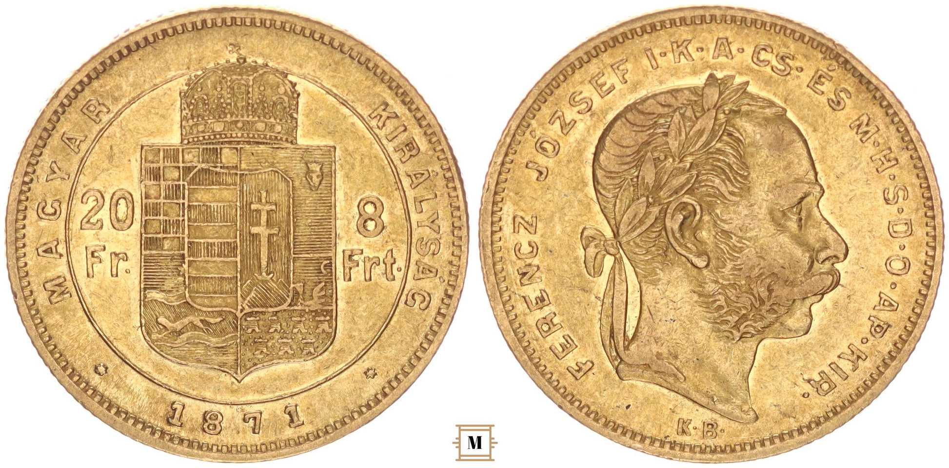Ferenc József 20 frank 8 forint 1871 KB