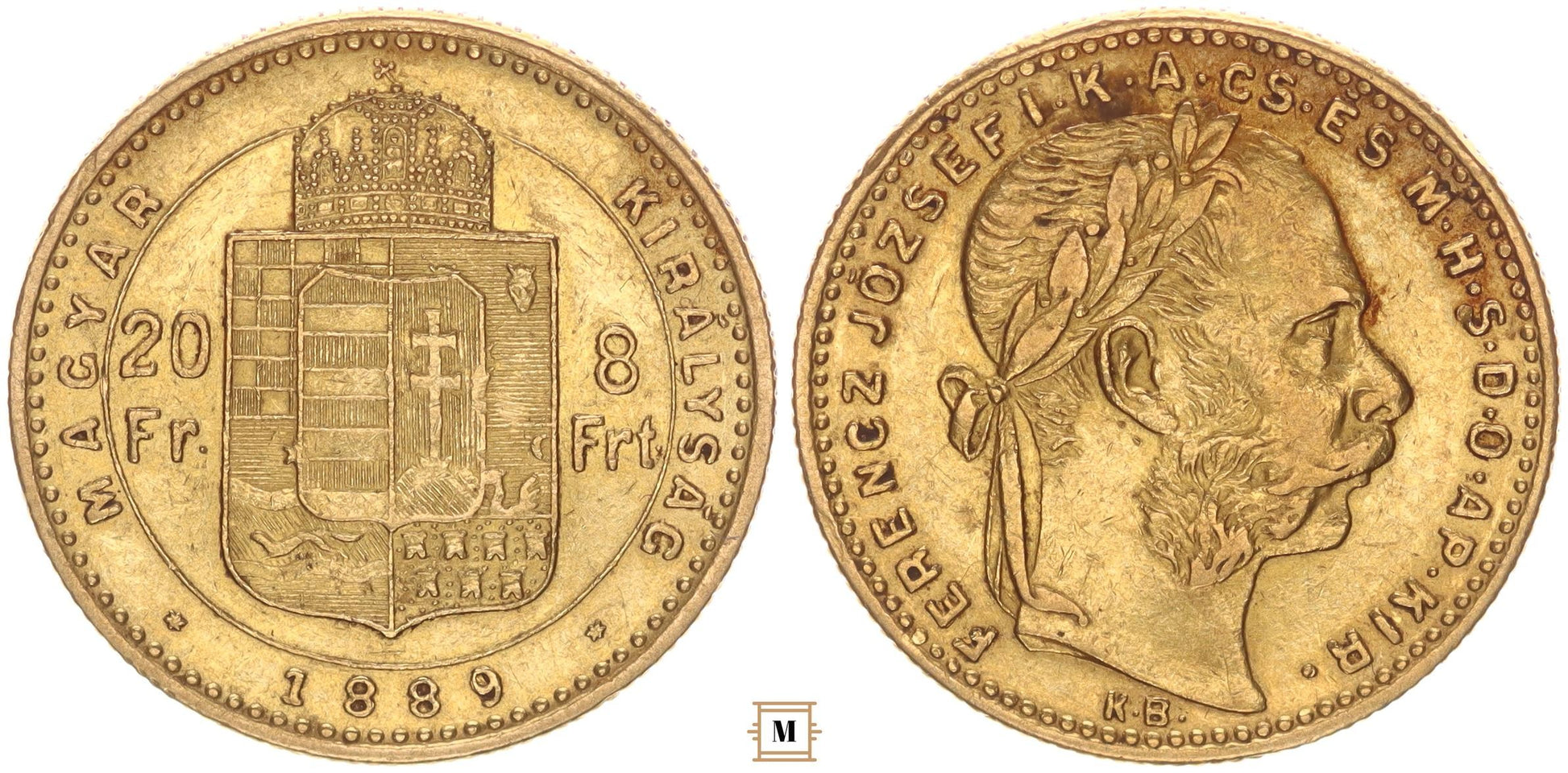 Ferenc József 20 frank 8 forint 1889 KB