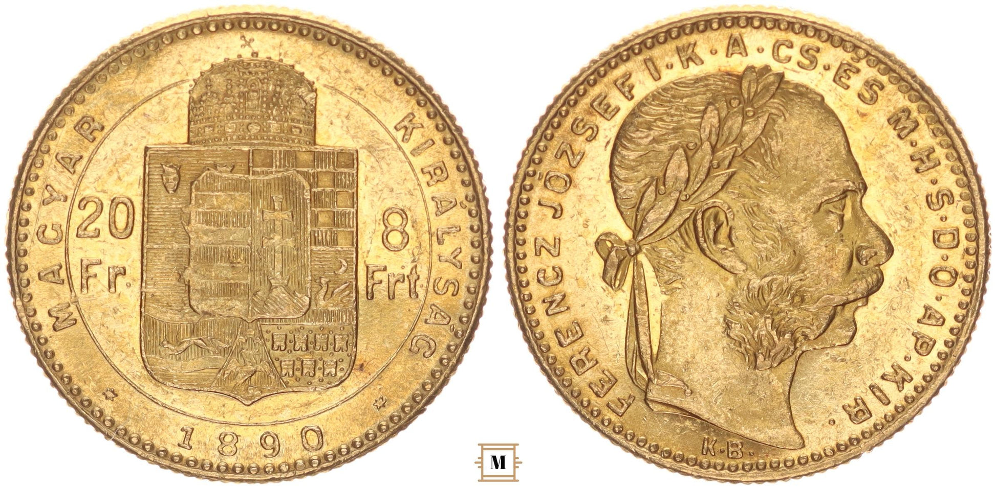 Ferenc József 20 frank 8 forint 1890 KB