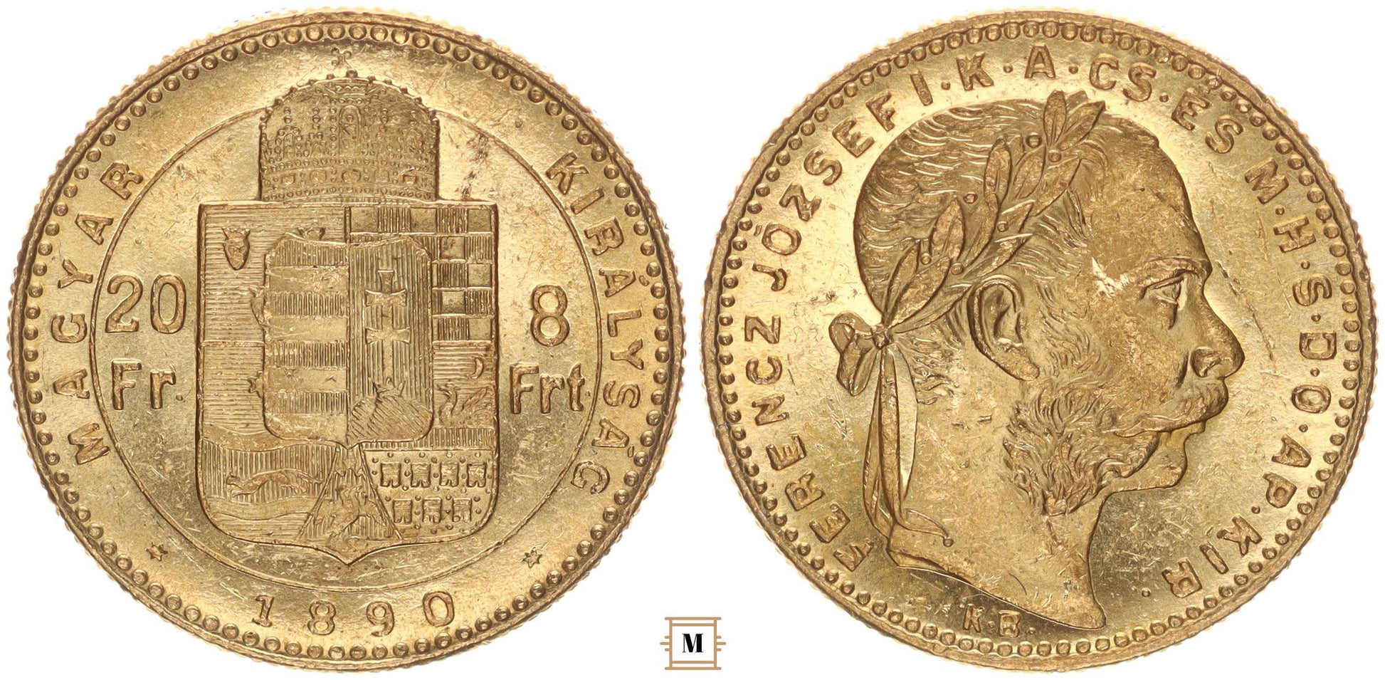 Ferenc József 20 frank 8 forint 1890 KB Fiume