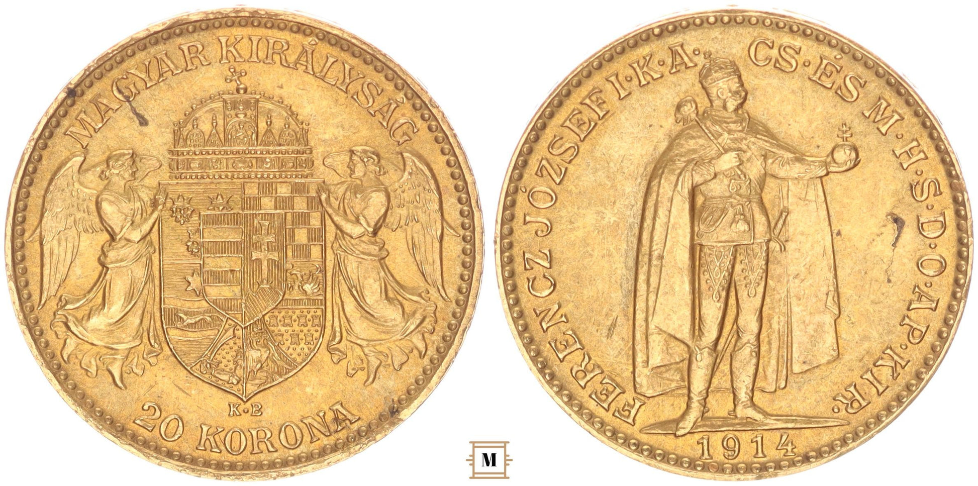 Ferenc József 20 korona 1914 KB Bosznia címerrel