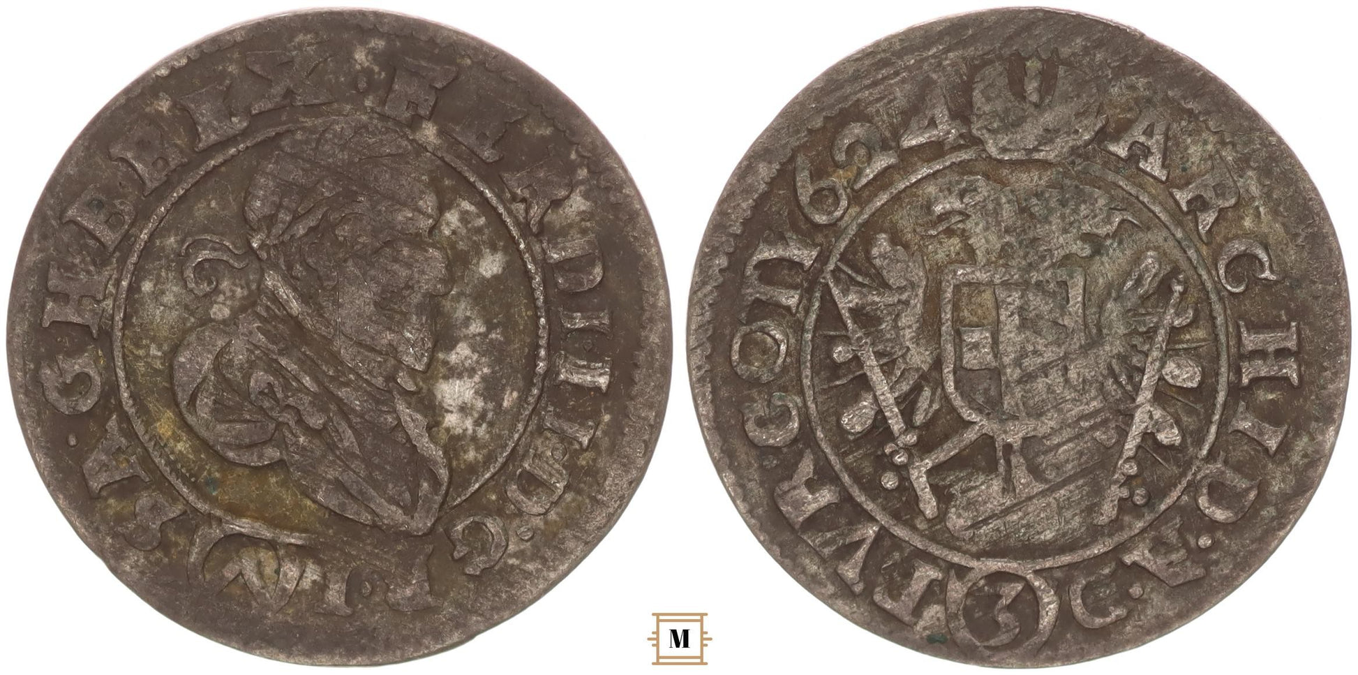 II. Ferdinánd 3 krajcár 1624 Bécs