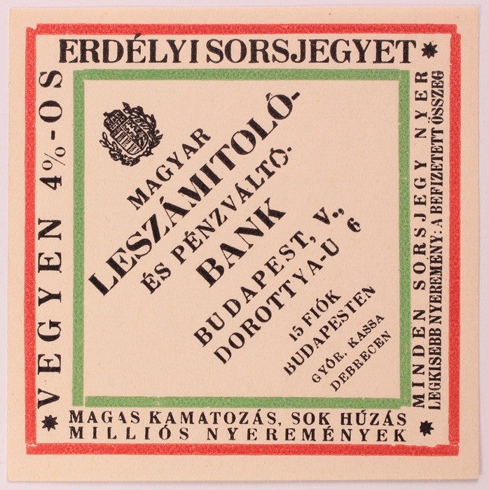 Leszámitoló Bank ,Erdélyi sorsjegy
