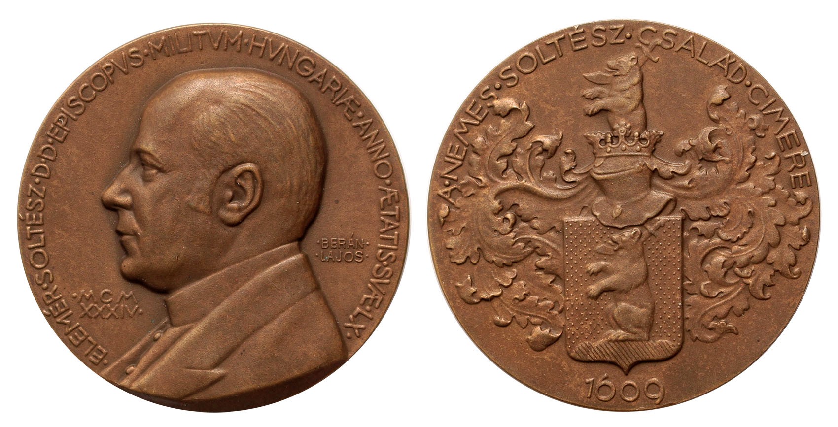 Soltész Elemér tábori püspök 60 éves érem 1934
