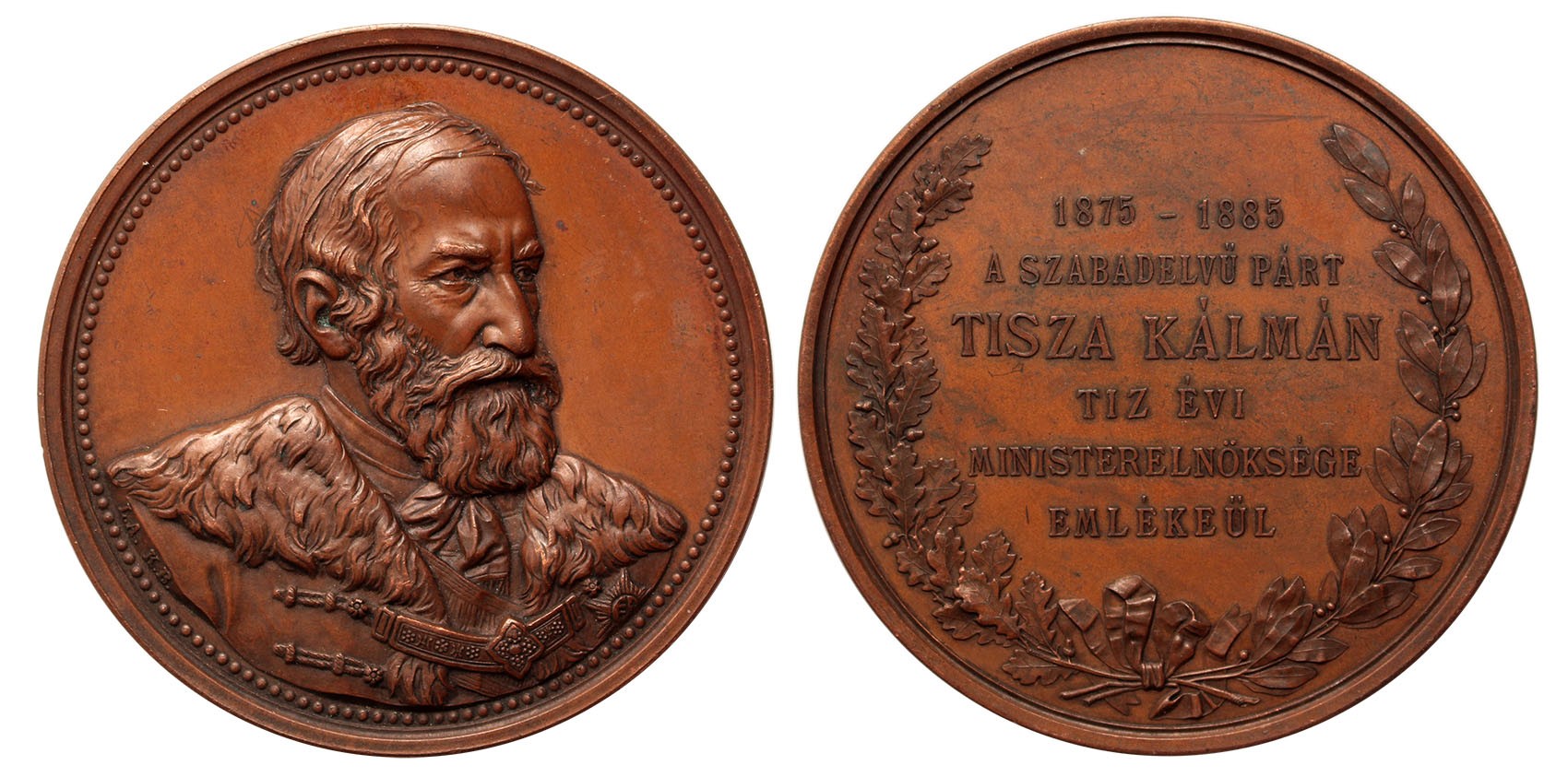 Tisza Kálmán 10 éves miniszterelnöksége emlékére érem 1885
